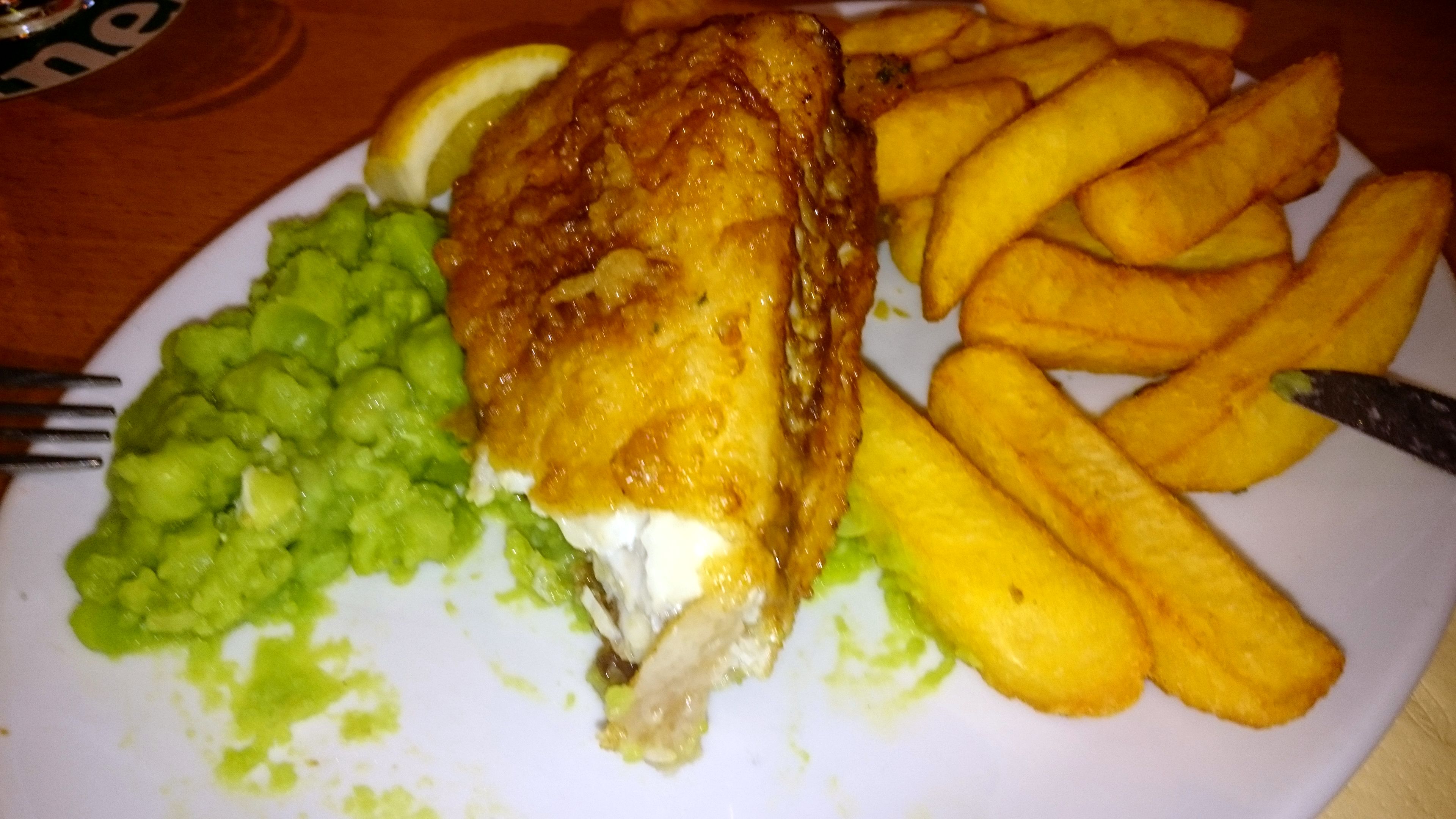 Ernährung war wieder landestypisch. Cream&Tea in Falmouth und Fish&Chips mit Erbsenpüree in Charlestown (die besten auf der Fahrt im Harbourside Inn).