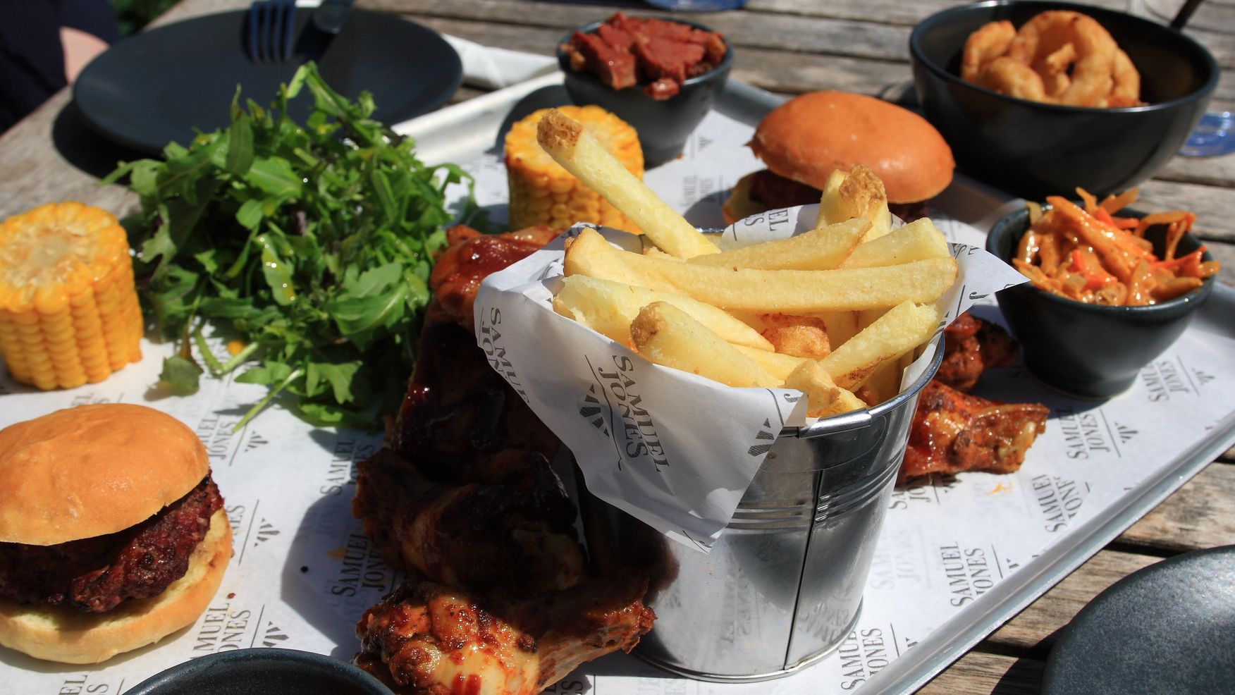 Zum Mittagessen in Exeter hatten wir aber sonniges warmes Wetter. Da schmeckte die BBQ Platte direkt am Fluss noch mal so gut.
