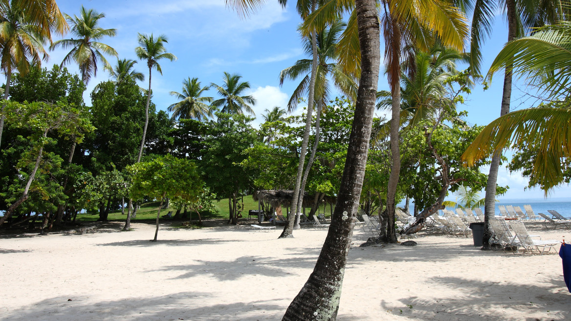 Noch schöner ist zwar der öffentliche Strand, da gibt es allerdings keinen Service, keine kostenlosen Getränke und vor allem deutlich weniger Schatten. Der Strand hat der Insel den Spitznamen Bacardi Island verpasst.