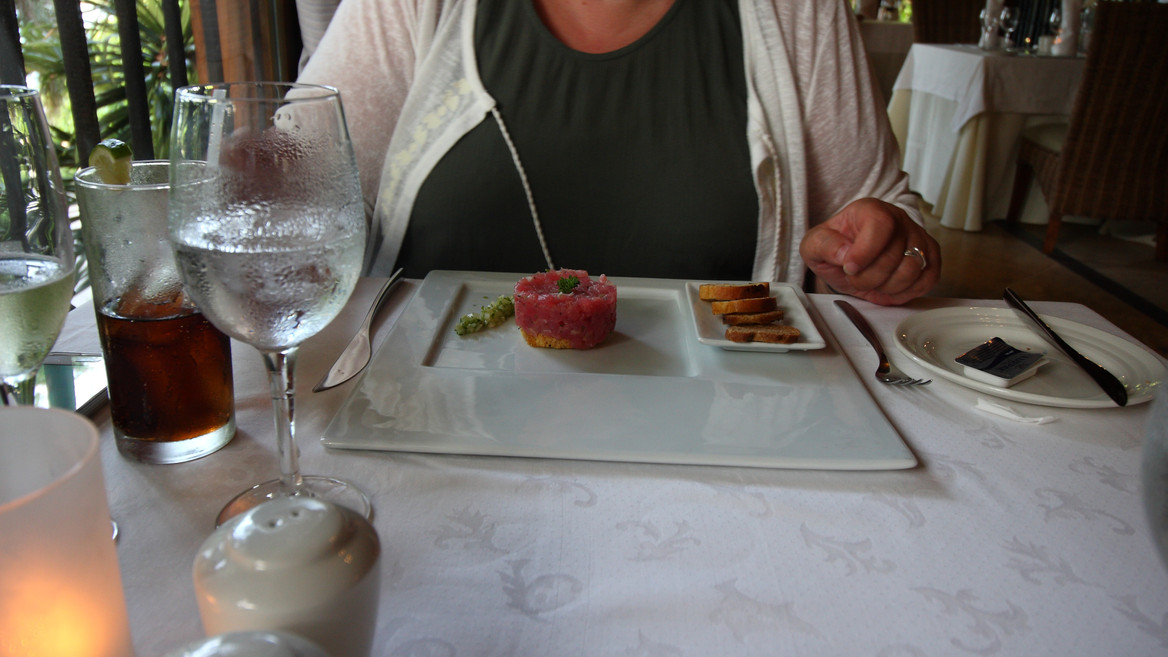 - Tatar vom roten Thunfisch mit Zwiebelkonfit, Limette und Koriander