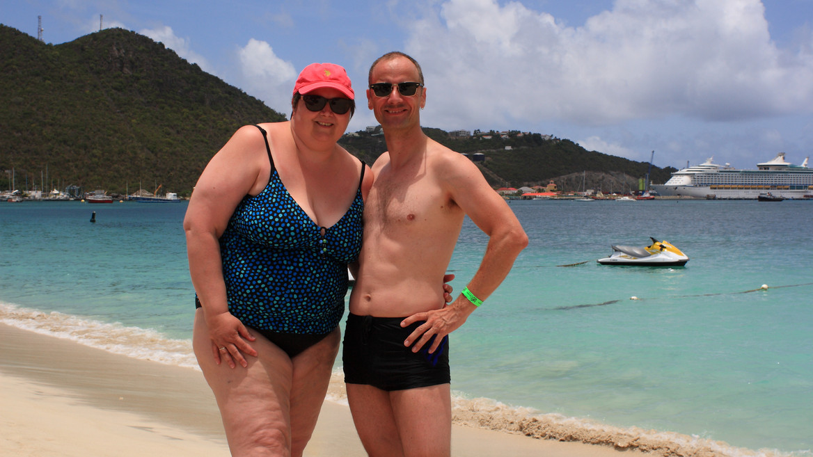 St. Maarten Es ist 7.47 und wir sind in Phillipsburg angekommen. Sobald die ersten Massen das Schiff verlassen haben, werden wir auch vom Schiff gehen. Am Strand haben wir Schirm und Liegen von Sweet Andy bekommen. Strand und Wasser sind traumhaft.